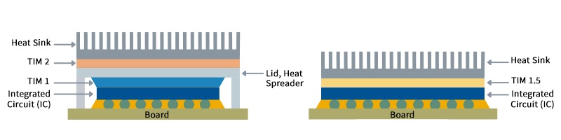 - TIM 1.5 bridges the gap between the die and heat spreaders like heat sinks or heat pipes, optimizing thermal conductivity and efficient heat dissipation.